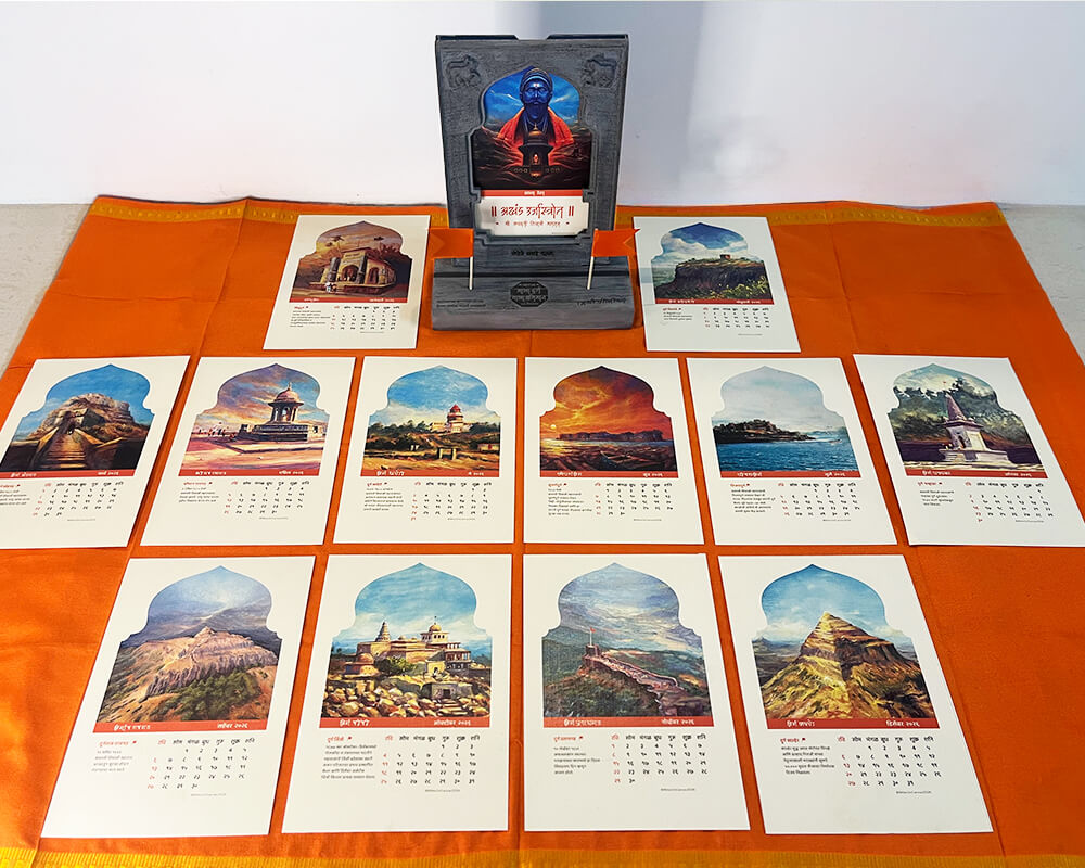 वर्ष संपल्यावर, कॅलेंडरचा खालील भाग सहज कापता येतो, ज्यामुळे प्रत्येक पानावरची कलाकृती शिवरायांच्या पराक्रमाची आठवण आणि स्वराज्याचा अभिमान म्हणून कायमस्वरूपी जपता येईल.