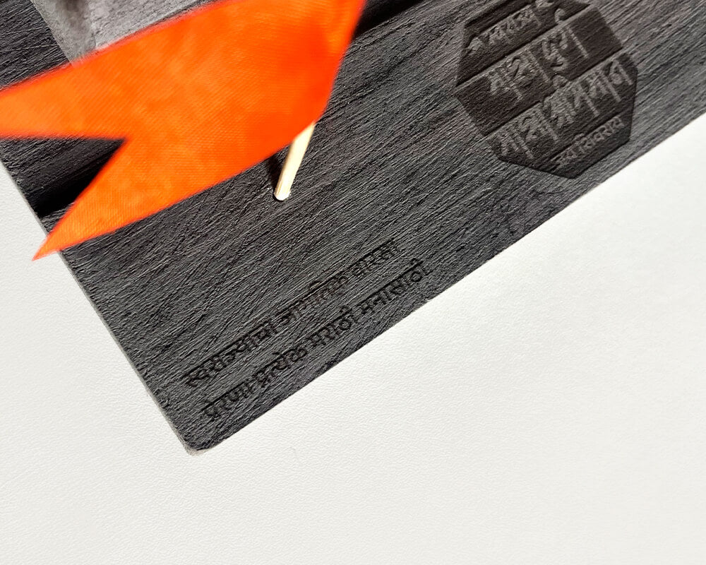 शिवरायांच्या काळातील मोडी लिपीचा स्पर्श या डिझाईनमध्ये जपलेला आहे .